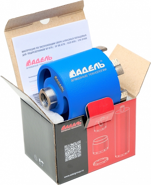 - Алмазная коронка с пылеудалением для подрозетников по железобетону Адель Super Fast SF DE-D70 Пылеуловитель 82/65 мм