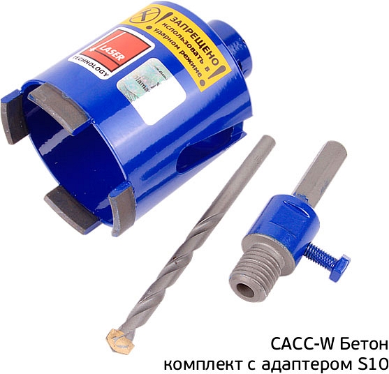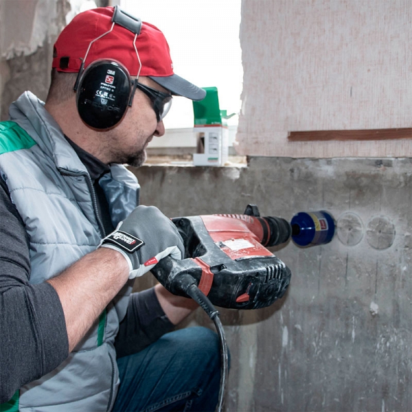 - Комплектуется центровочным твердосплавным сверлом с магнитным переходником М16 / SDS Plus для установки сверла в патрон перфоратора