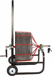 - Стальной открытый барабан (легкая мойка и сушка спирали) со специальным механизмом смотки троса