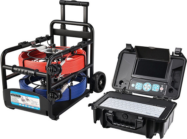 Проталкиваемая система видеоинспекции канализации Rotorica 3499F-Dual-40 (Роторика 3499Ф-Дуал-40) с камерами CMOS, Ø 18 × 135 мм, широким углом обзора 82° и Ø 23 × 155 мм, широким углом обзора 120°, разрешением формата Full HD 1080P AHD (1920 × 1080), записью видео и аудио, встроенными счетчиками расстояния и катушками с кабелями Ø 4,8 мм × 40 м и Ø 5,2 мм × 40 м предназначена для осмотра внутренних трубопроводов, канализации и сливов, а также для инспекции каналов, дымоходов, воздуховодов в производствах и домах.