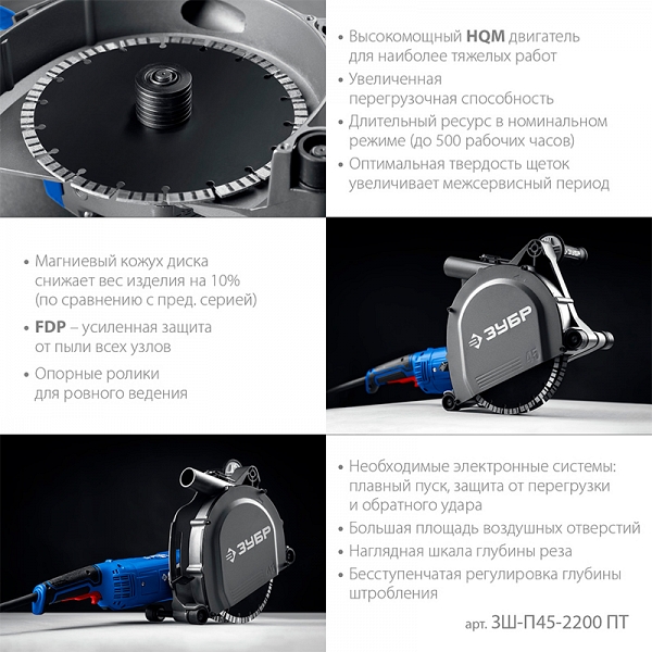 Преимущества штробореза Зубр Профессионал ЗШ-П45-2200 ПТ: