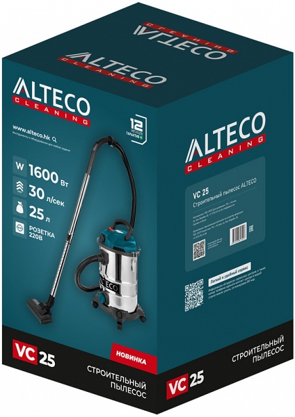 Цена и технические характеристики строительного пылесоса Alteco VC 25: