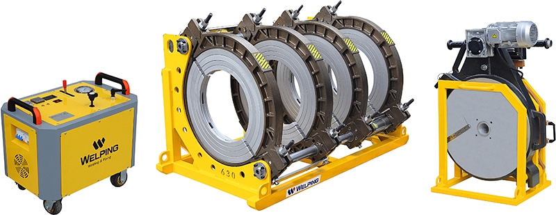 Стыковой сварочный аппарат Welping WP630A (Велпинг ВП630А) – полуавтоматическая электрогидравлическая стыковая сварочная машина для сварки пластиковых (ПЭ (полиэтиленовых), ПП (полипропиленовых), ПВДФ (поливинилиденфторидовых) / PE, PP, PVDF) труб Ø 315, 355, 400, 450, 500, 560, 630 мм на стройплощадках, в полевых условиях и цехах при прокладке дренажных труб и водопроводных магистралей.
