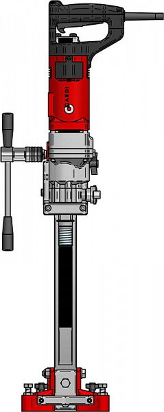 Установка алмазного бурения Cardi 185 (Карди 185) предназначена для сверления всухую и с подачей воды, вручную и с применением станины, под прямым углом и под углом до 45° отверстий в бетоне, железобетоне и кирпиче Ø 32 – 202 мм.