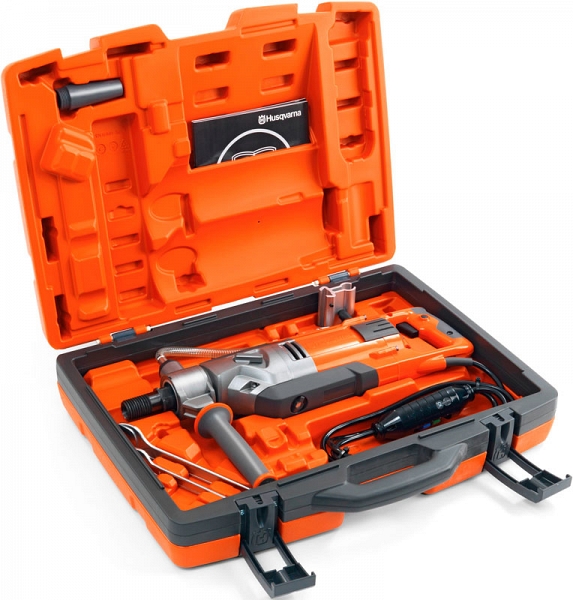 Установка алмазного бурения Husqvarna DM 220+DS 250 Double Speed (Хускварна ДМ 220+ДС 250 Дабл Спид) предназначена как для влажного, так и для сухого ручного бурения отверстий Ø до 80 мм (3,14") и при установке на стенд Ø до 150 мм (5,9"), серии отверстий и бурения под углом в стенах, полах и потолках в разных материалах, включая армированный бетон, кирпич и другие строительные материалы. Идеально подходит для небольших видов работ, таких, как: прокладка вентиляционных и сантехнических труб, коммуникационных кабелей и установки электрических розеток. Превосходный выбор как для профессионалов, так и для начинающих пользователей.