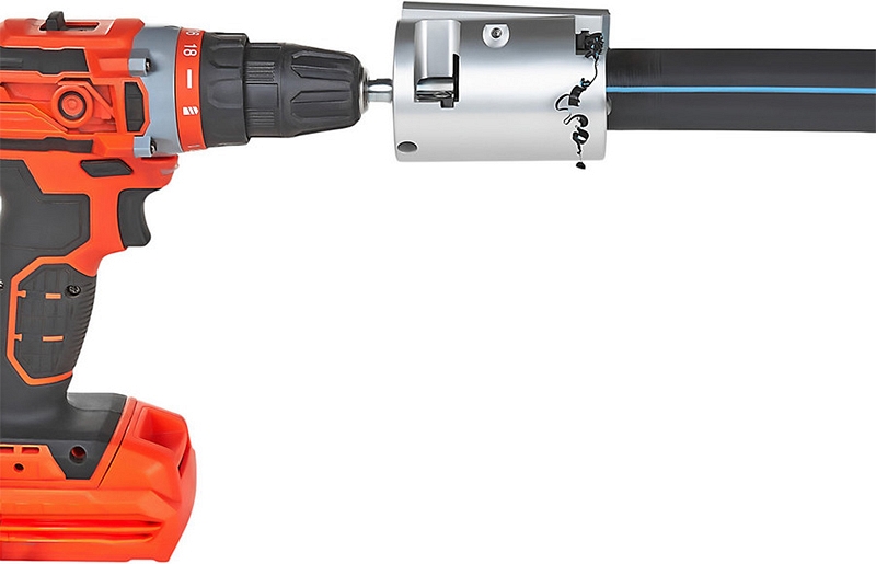 Устройство для снятия оксидного слоя с полиэтиленовых труб Gas Fusion УСО-90 (Газ Фьюжин USO-90) – скребок под дрель или шуруповерт для эффективной зачистки полиэтиленовых (пэ, пнд) труб Ø 90 мм перед муфтовой раструбной и электромуфтовой сваркой в стесненных условиях ограниченного пространства.
